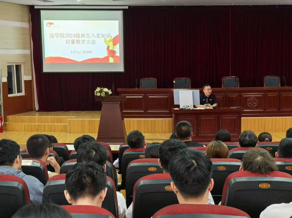 为引导2024级新生坚定理想信念,筑牢党性根基,8月29日下午在模拟法庭开展2024级新生党性启蒙教育大会。本次大会由新生辅导员张利彬主持,2024级全体新生参加。