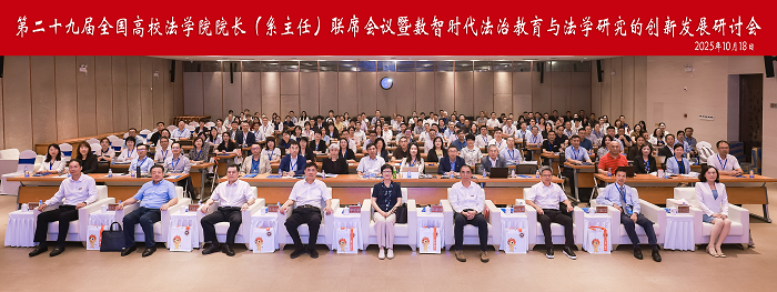 10月18日,第二十九届全国法学院院长(系主任)联席会议暨数智时代法学教育与法学研究的创新发展研讨会在福建省福州市召开。本次会议由福建师范大学主办、福建师范大学法学院承办,北京大学出版社、人民法院出版社等单位提供支持。来自中国政法大学、华东政法大学、上海交通大学、厦门大学等高校专家学者二百余人参会。我院院长武善学、副院长张建与会。