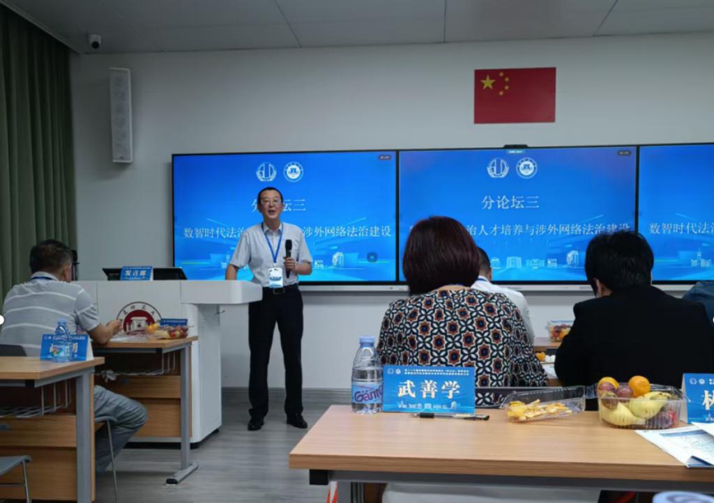 武善学院长作为点评人参加了分论坛三“数智时代法治人才培养与涉外网络法治建设”,就数智时代背景下法学教育内容迭代、法科生数据素养提升、涉外法人才培养等与会专家交流。张建副院长参加了分论坛四“人工智能与法学教育的深度融合”,就智慧课程建设、AI赋能法学教育创新实践等与会专家、法学教育AI服务机构进行座谈。