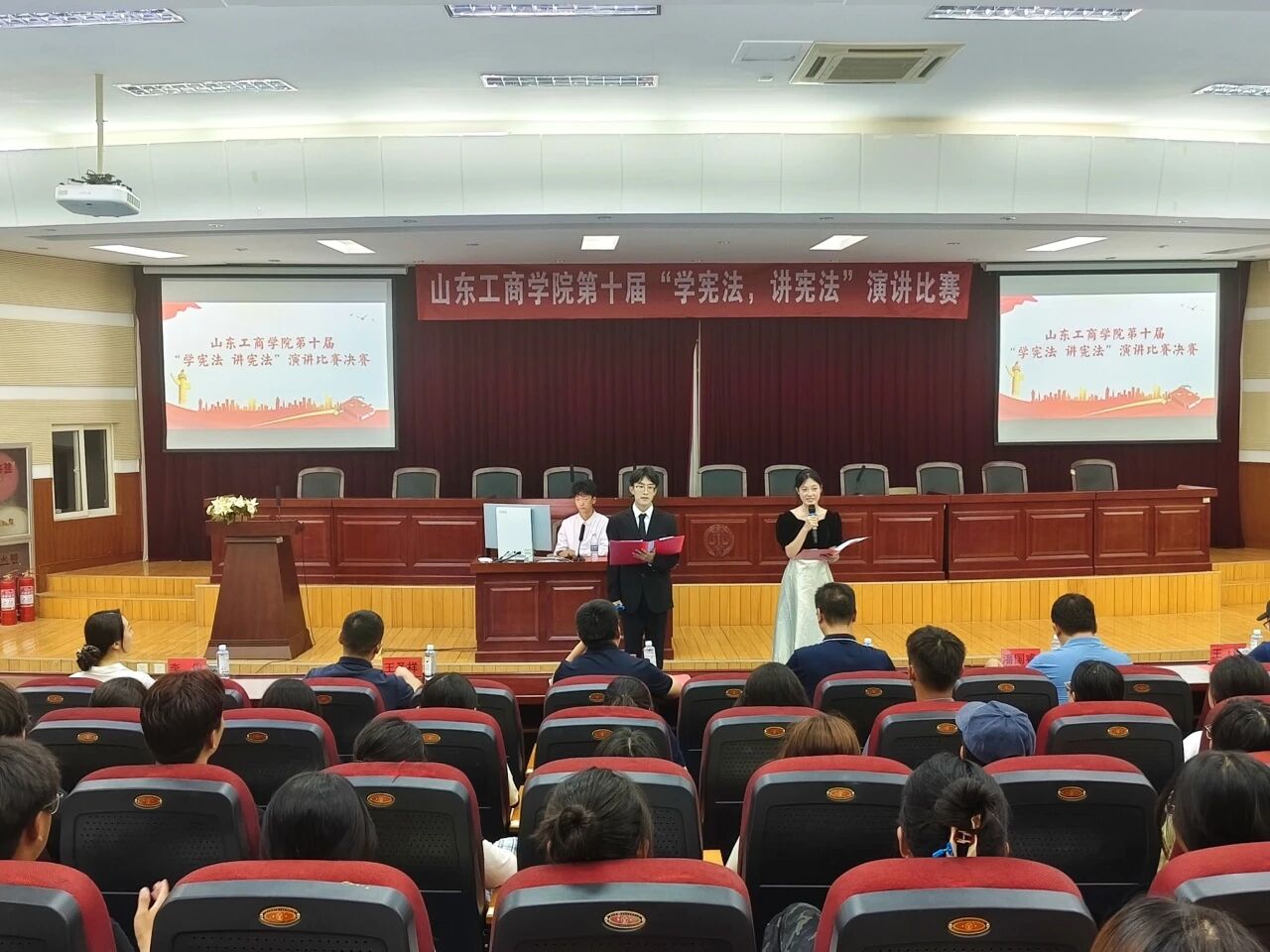9月14日晚,山东工商学院第十届“学宪法,讲宪法”演讲比赛决赛于第四教学楼模拟法庭成功举办。本次比赛由山东工商学院党委宣传部主办,山东工商学院党委学生工作部、烟台市法学会协办,山东工商学院法学院承办,面向全校2023级、2024级在校本科生展开,学校党委宣传部副部长姜岩、烟台市法学会研究部主任潘国睿应邀参加,并与法学院领导班子成员、部分教师代表组成评委团参加评审。